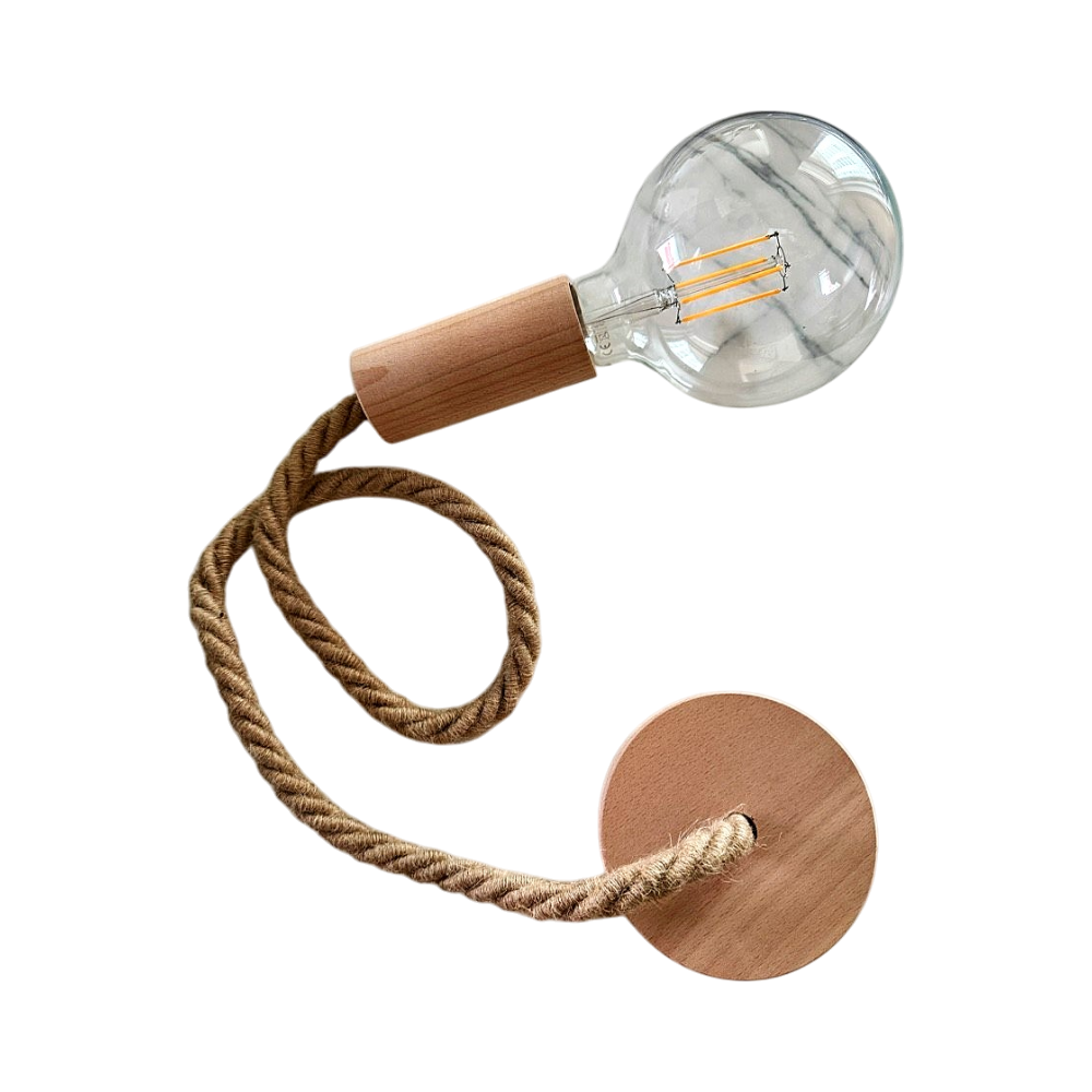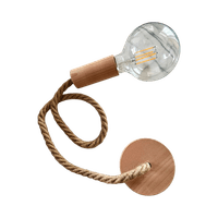 ”Kattovalaisin, jossa on luonnollinen puupinnoite. XL-johto 1,6 cm. E27 lamppukiinnitys. Mukana 7W 720Lm led-lamppu. Kattoruusun halkaisija 12 cm. Johdon pituus 100 cm. Kokonaiskorkeus n. 129 cm.”
