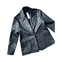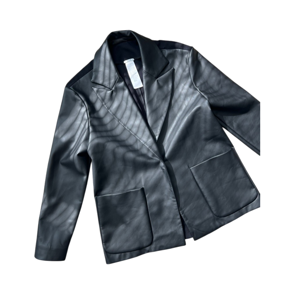 Uutta vastaava kaunis bleiseri, edestä pehmeää tekonahkaa ja selän puolelta joustava. Koko s, pituus 72cm ja kai kai mitta noin 50cm