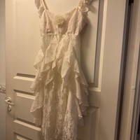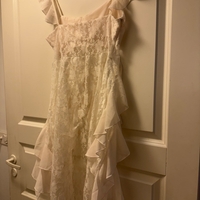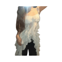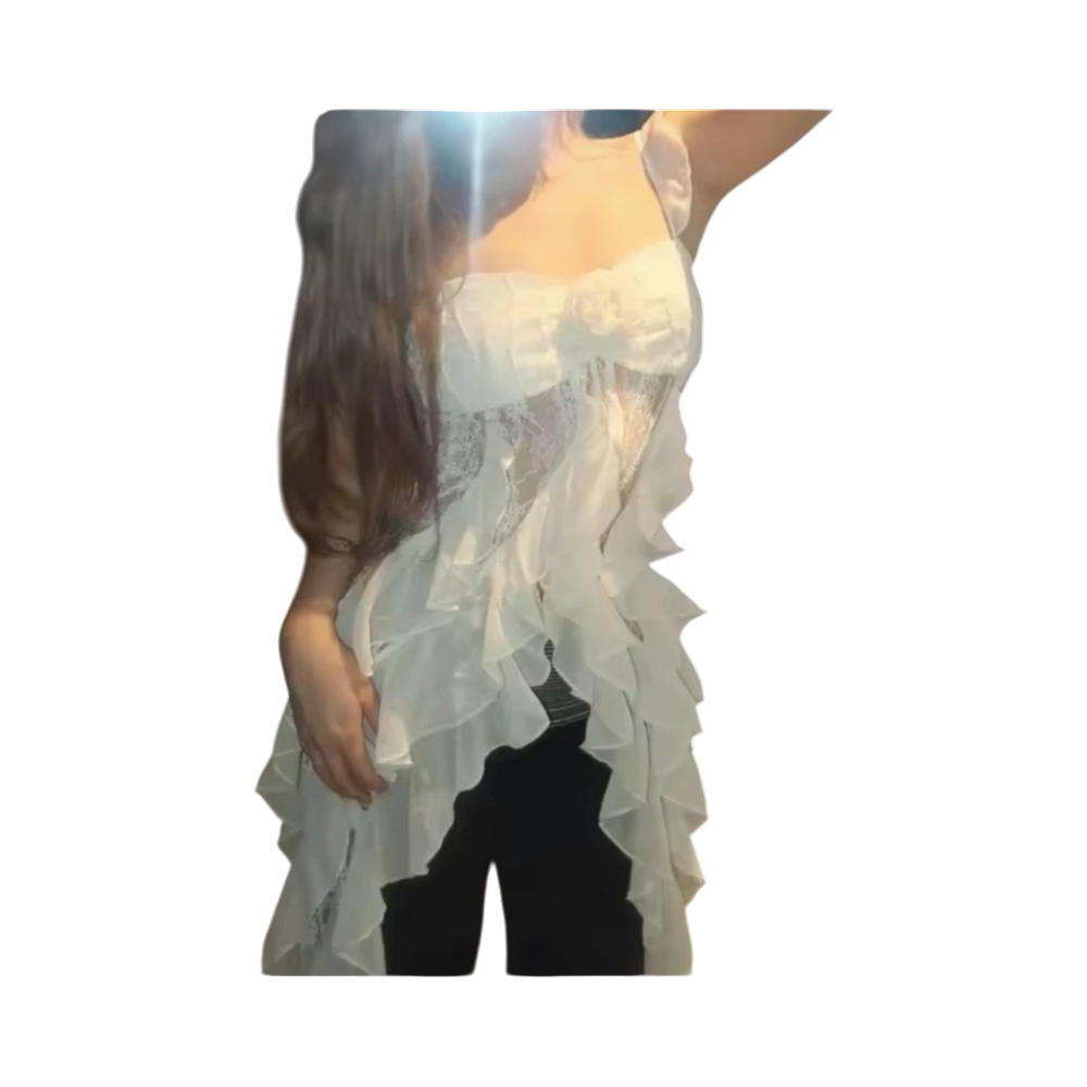 Valkoinen frillareuna, pitsiyläosa, juhlava lyhyt toppi