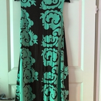 Sivusaumassa pienet taskut. Minttu- suklaaväri ja kankaan pintamateriaali näkyy parhaiten viimeisessä kuvassa. Pituus hartialta helmaan 103cm ja kai-kai 49cm. Materiaali on viskoosia, mutta kudos joustaa jnkv, tuntuu kuin olisi elastaania mukana.