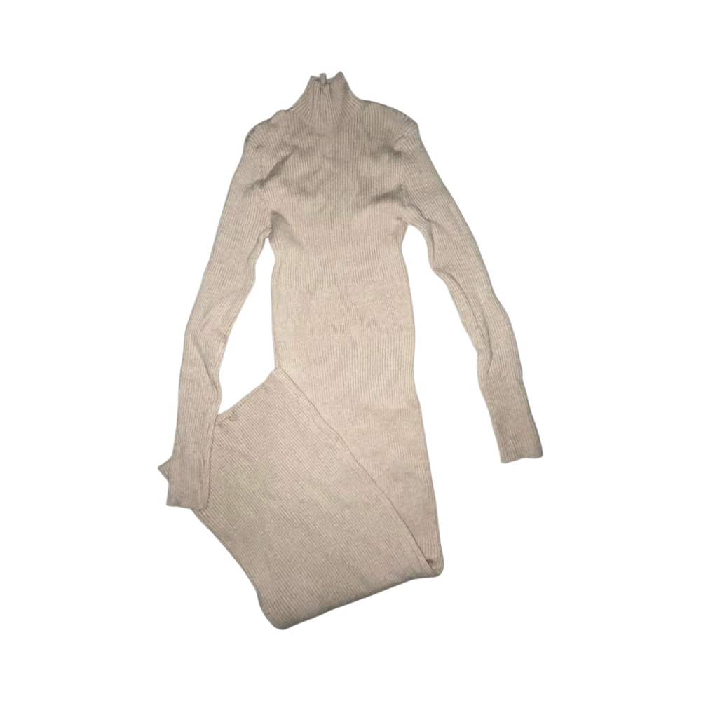 Pitkä ribbineulemekko, poolokaulus, pehmeää joustavaa materiaalia, käyttämätön.