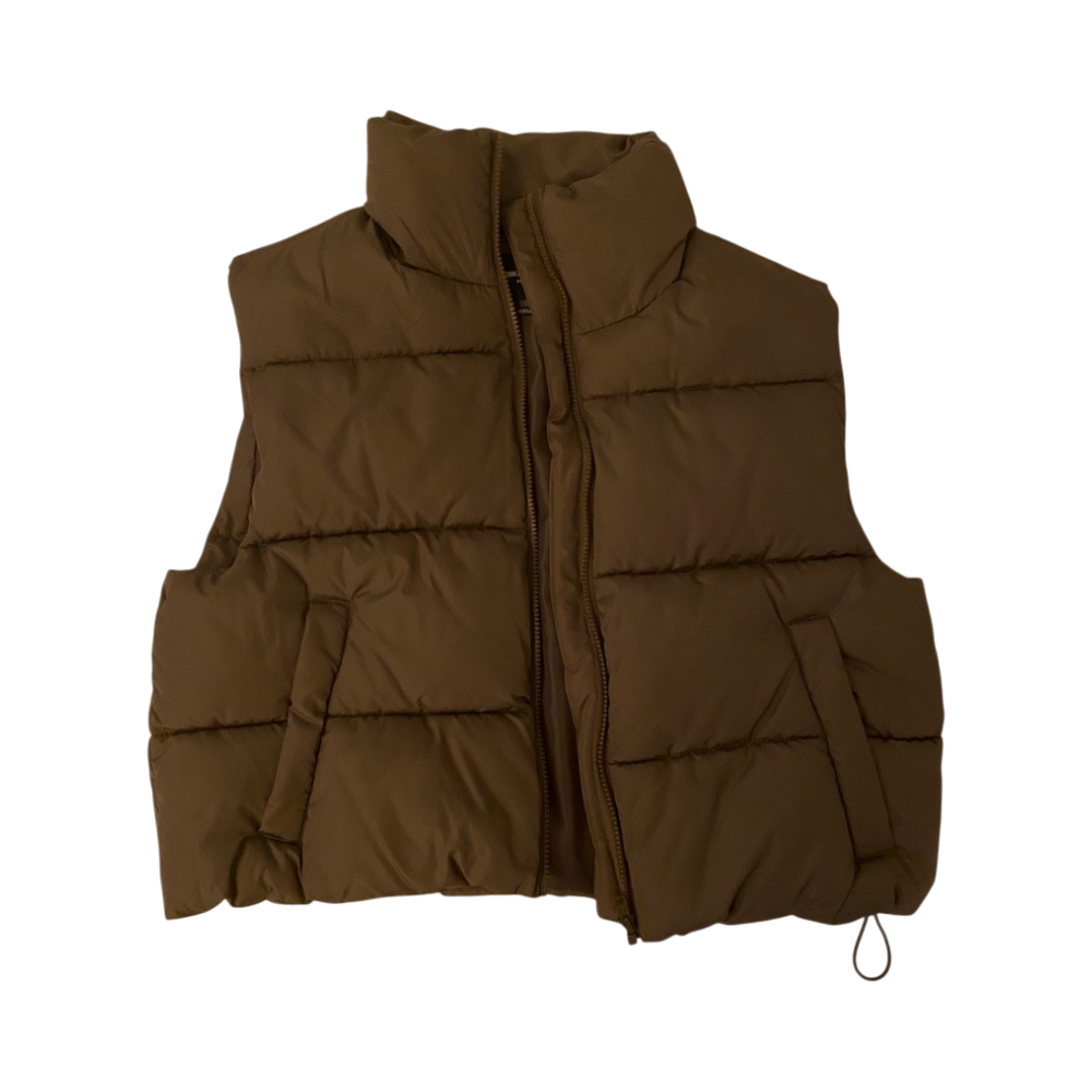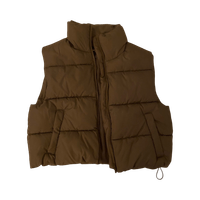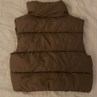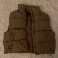 Lyhyt, toppauksella ja korkealla kauluksella, lämmin ja kevyt.