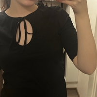 Mustaa t-paitaa avonaisella solmukeaukolla, käytetty.