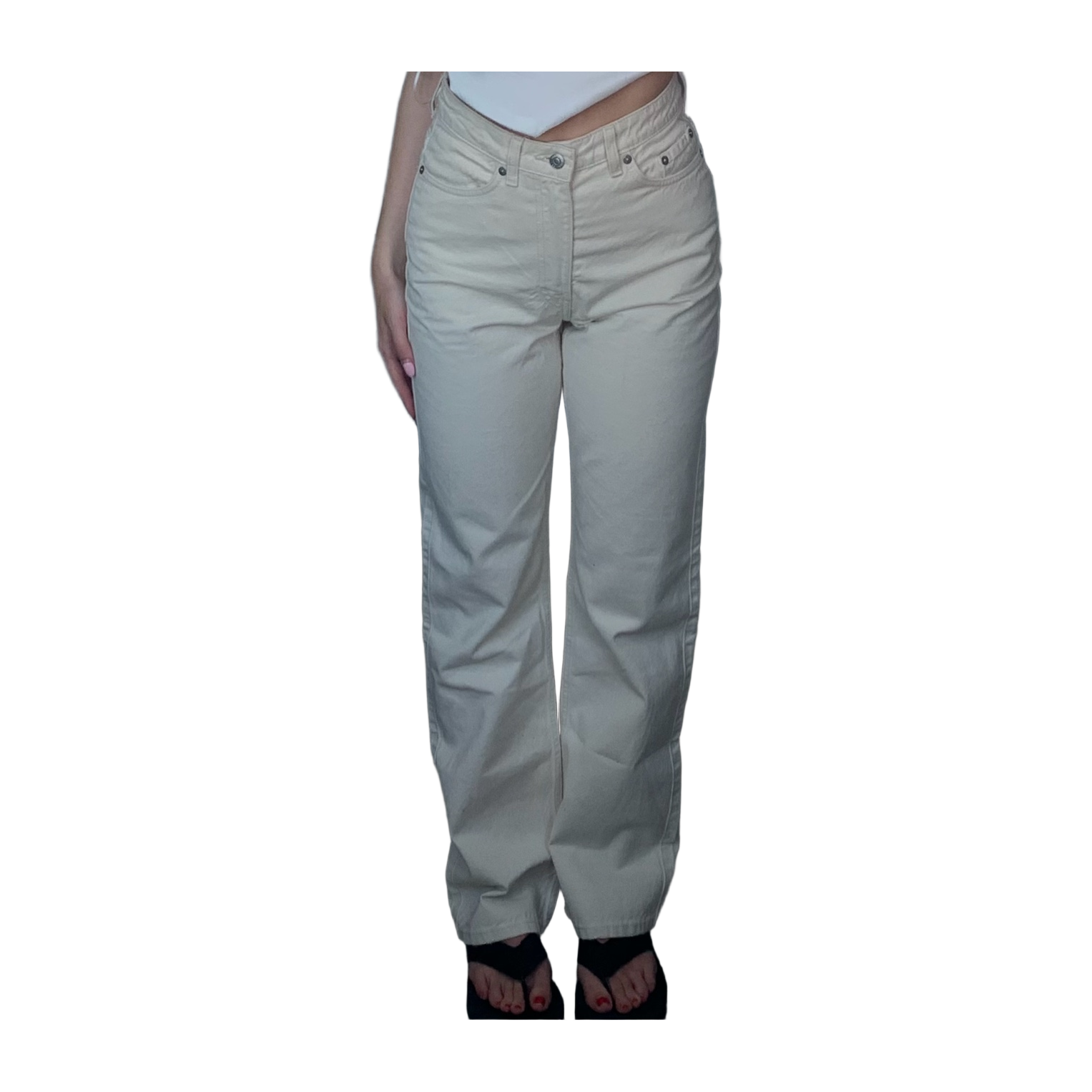 Vaaleat korkeavyötäröiset farkut, kokoa 27