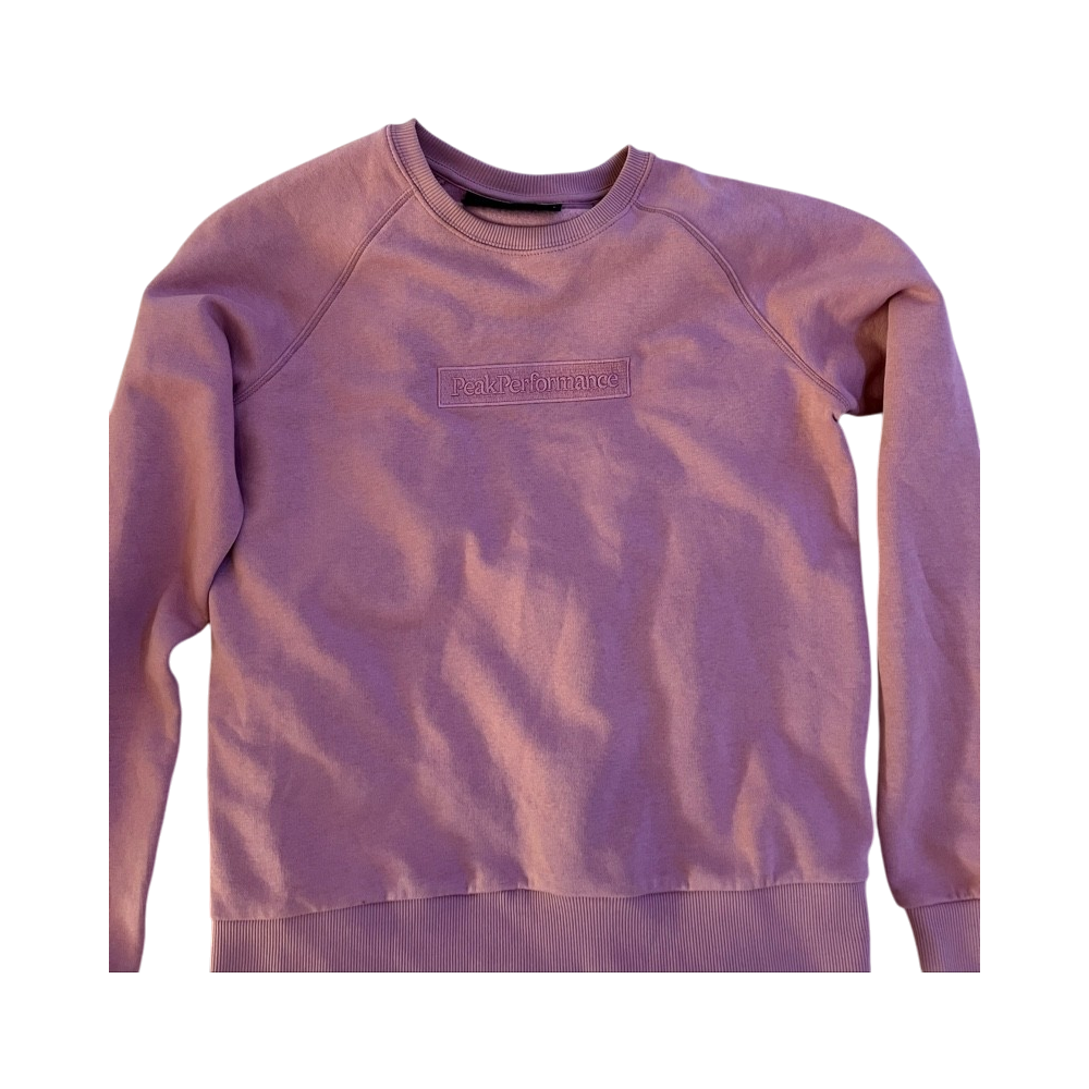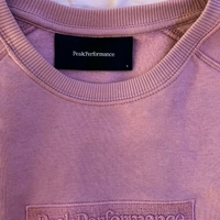 Vaaleanpunainen pyöreäkauluksinen college, brodeerattu logo.