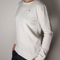 Klassinen Tommy Hilfiger pitkähihainen neulepusero, valkoinen, naisten XS.