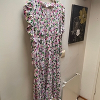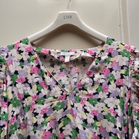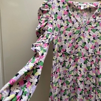 Naisten kukka mekko jossa puhvi hihat joissa kuminauha jousto