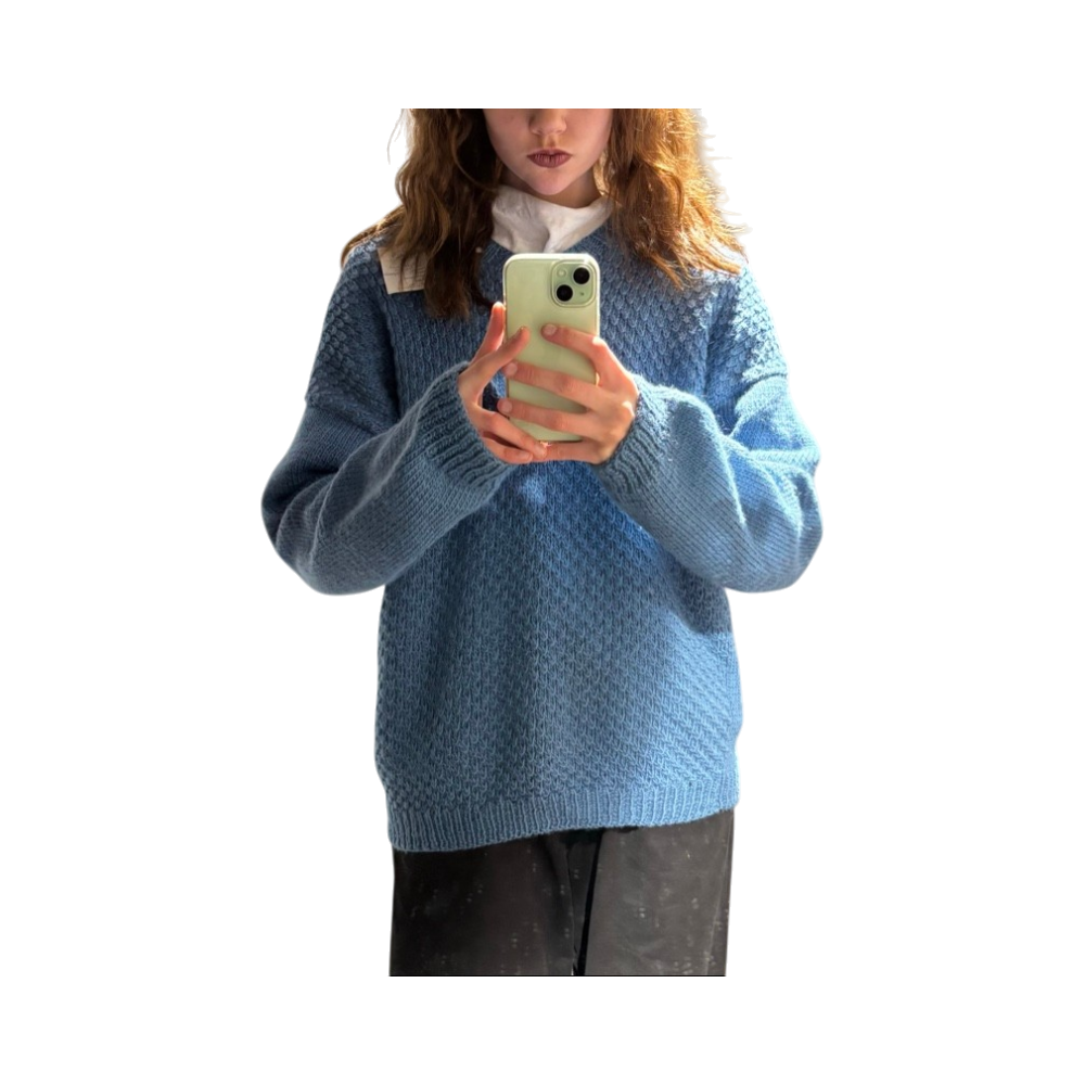 100% villaa oleva ihana, sininen villapaita. Jonkun taitavan itse tekemä.