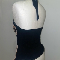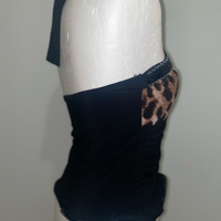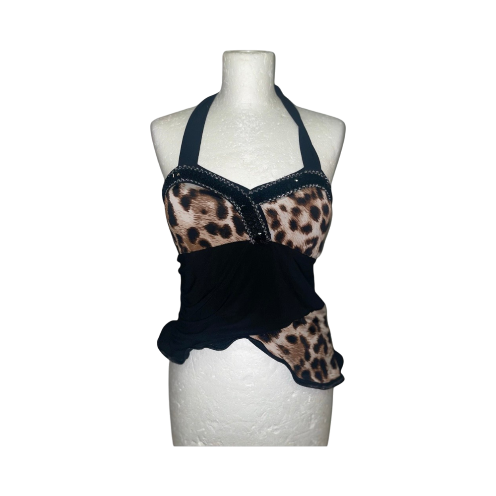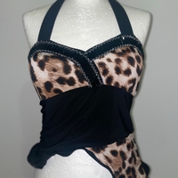 Halter-olkainen , leopardikuosi ja paljetti koristeita.