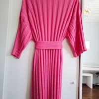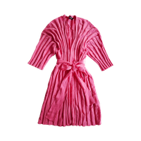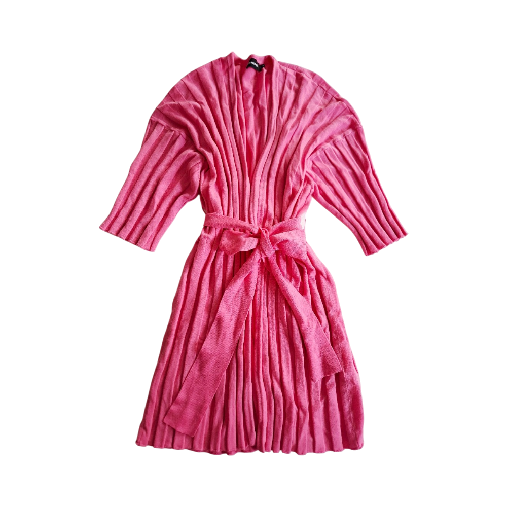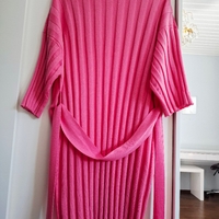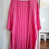 Long chunky ribbed knitted cardigan with belt, bright pink 100% super soft wool.