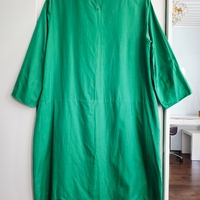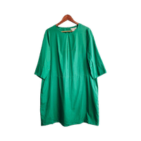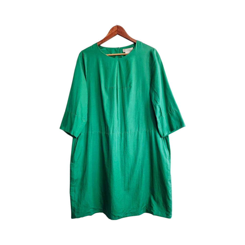 Bright green cotton-silk blend relaxed fit dress with pockets, lined.
