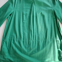 Ihanaa pehmeää, hengittävää, läpinäkymätöntä puuvillan ja silkin sekoitetta. Sivussa taskut, takana merkkitägi ja niskassa nappikiinnitys.