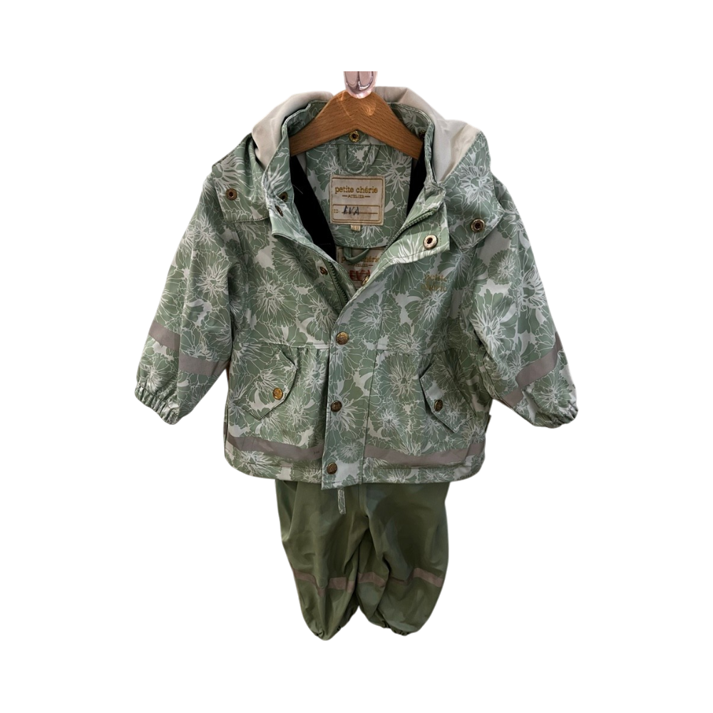 Kaksiosainen vedenpitävä sadeasu heijastinraidoilla, koko 80.