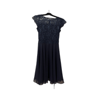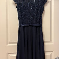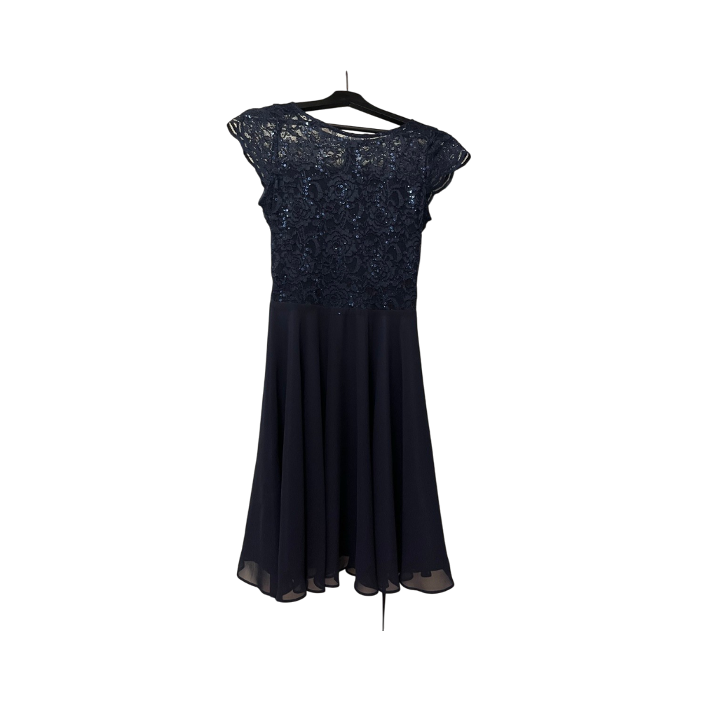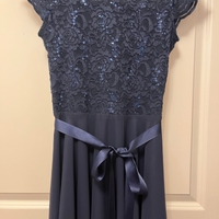 Lyhyt hihainen pitsiyläosa ja laskostettu helma, nary vyö vyötäröllä. Kerran käytetty.