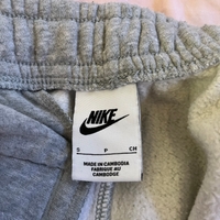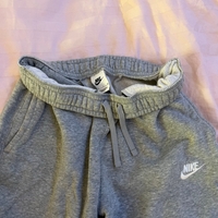 Mukavat harmaat Nike-collegehousut, joustava vyötärö ja taskut.