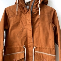 Takki pitää jonkin verran vettä ja saumat on teipattu. Takki on ollut käytössä sekä vapaa-ajalla että lasketellessa.