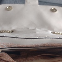 Leveys n. 25 cm ja korkeus 16cm. Sisällä vaaleanpunainen vuori.