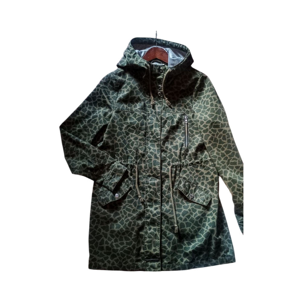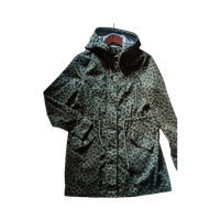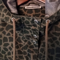 Huppu, vetoketju ja kiristysnyörit vyötäröllä.