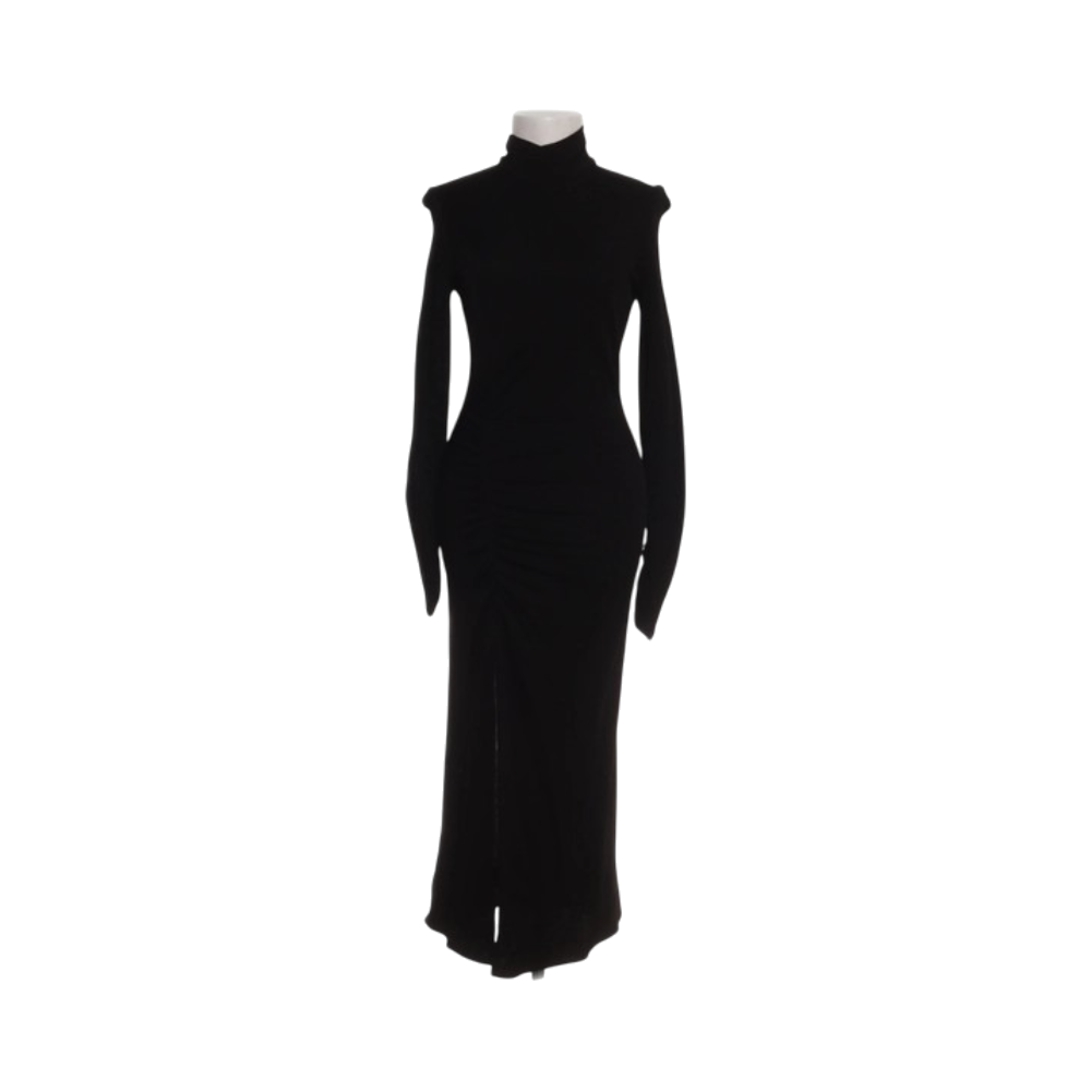 Tyylikäs musta mekko. Halkio korkealle reidessä. Kokomerkintä L, mutta ei veny, sopii S kokoisrlle