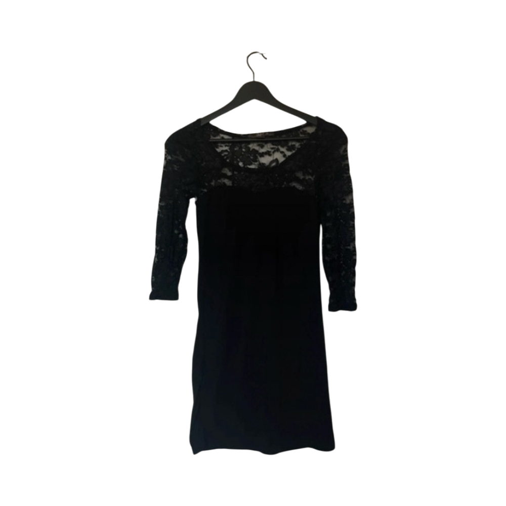 Musta mekko pitsiyläosalla, 3/4-hihat