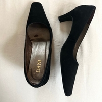 Mustat mokkakengät, matala kapea korko, hieman käytetyt.