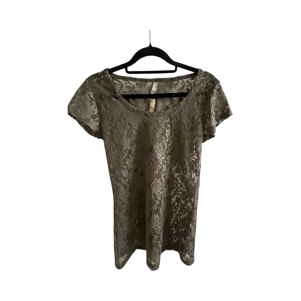 Läpinäkyvä pitsitoppi, lyhyet hihat, naisille.