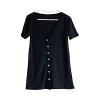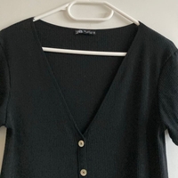 Minimalist and versatile black ribbed knit dress from Zara. Soft and stretchy fabric, V-neckline and full button-front detailing. Short sleeves and a comfortable everyday basic that can be worn as a mini dress or layered as a longer cardigan/top over trousers. Very good condition, inner care tags removed.