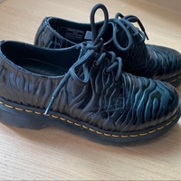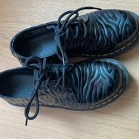 Mustat Dr. Martens, jossa tikattu keltainen sauma. Erinomaisessa kunnossa, käytetty vain muutamia kertoja.