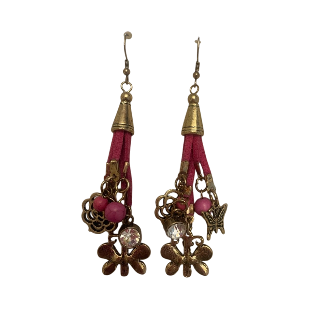 Pitkät boho-tyyliset turkoosit helmikorvakorut, ihanat tumman vihreillä kivillä olevat korvikset, emalisoidut renkaat, ja makeat pinkit korvikset nahkaa ja koristeita. Yhteispakettiin kerralla kaikki!