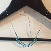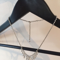 Kahden kaulakorun setti. Kirkaskivisen korun ketjussa kulumaa lukon kohdalla.