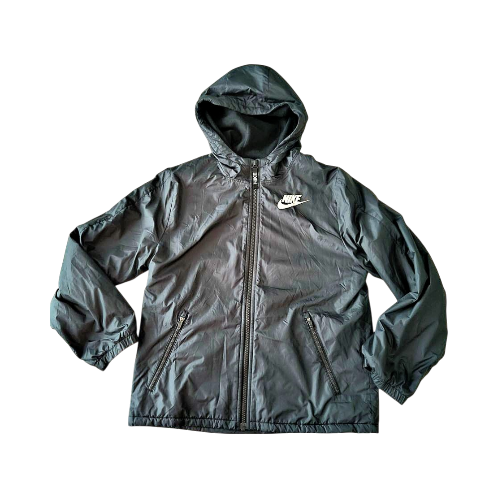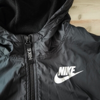 Nike musta kevyt takki fleecevuorella. Välilkauteen, leutoon talveen. Suora malli.