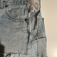 Vaaleansinen farkku hame pitsiyksityiskohdilla