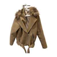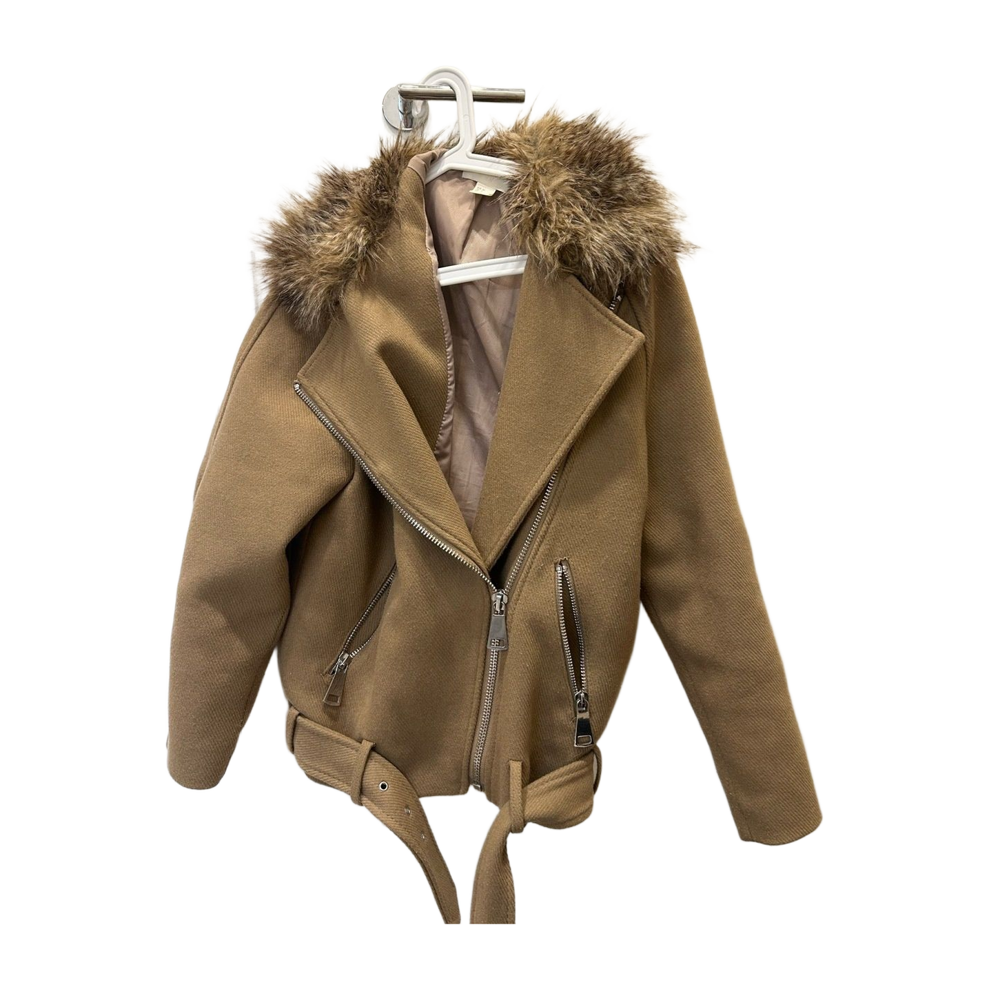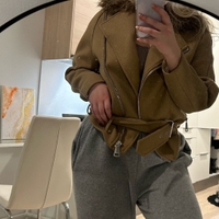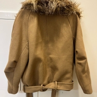Villakangatakki bikerleikkauksilla. Koko 34 mutta olen itse m kokoinen ja mahtuu vetoketjukin hyvin kiinni asti tuntuen rennolta. Oversize.