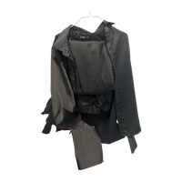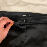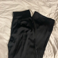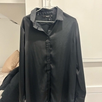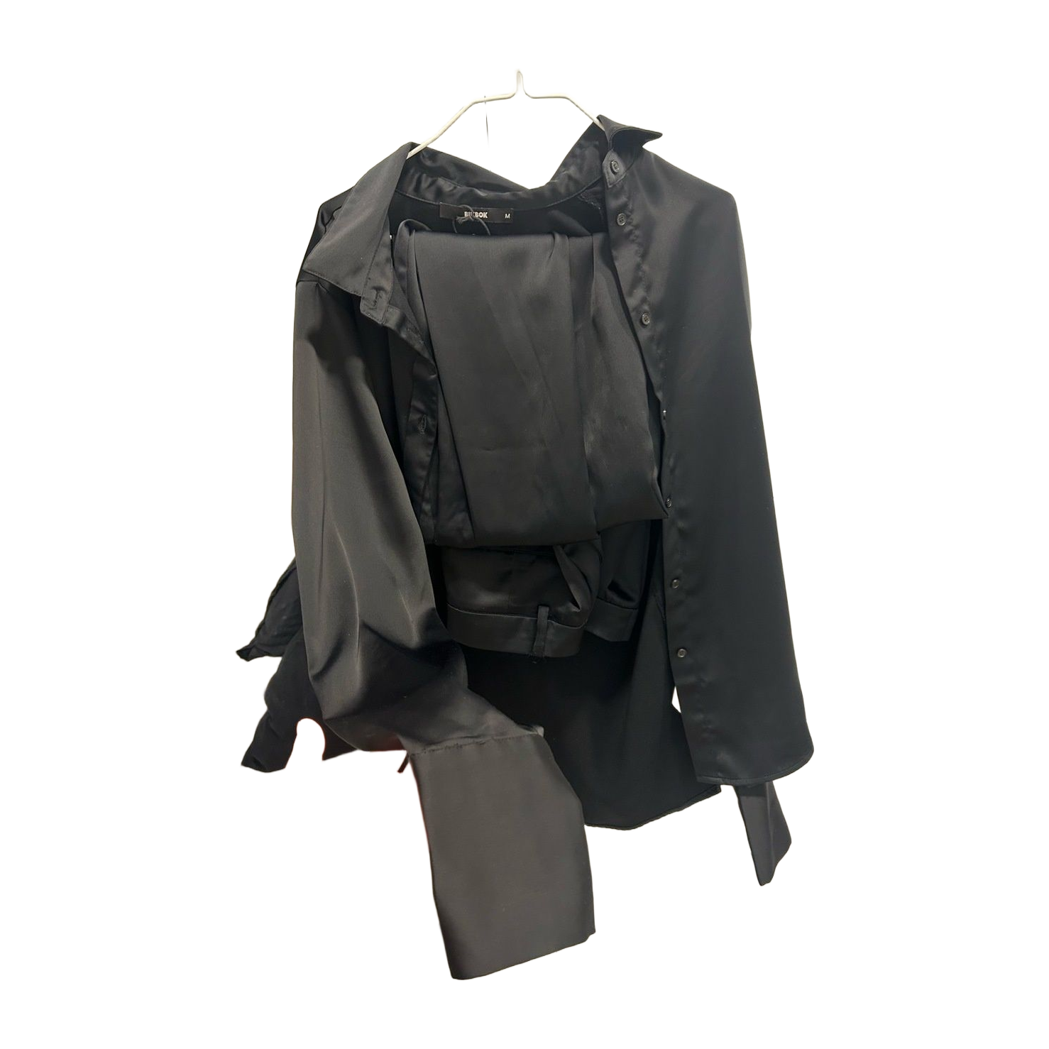 Musta satiininen kauluspaita ja suorat housut, yhtenäinen setti. 🖤