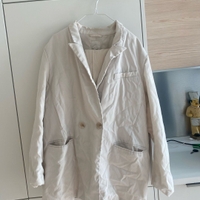 Valkoinen bleiseri. Paljon käytetty ja tarvitsee silityksen🤍paksuhko materiaali ja olkatoppaukset.