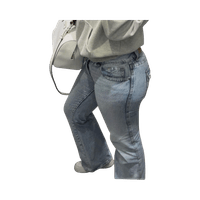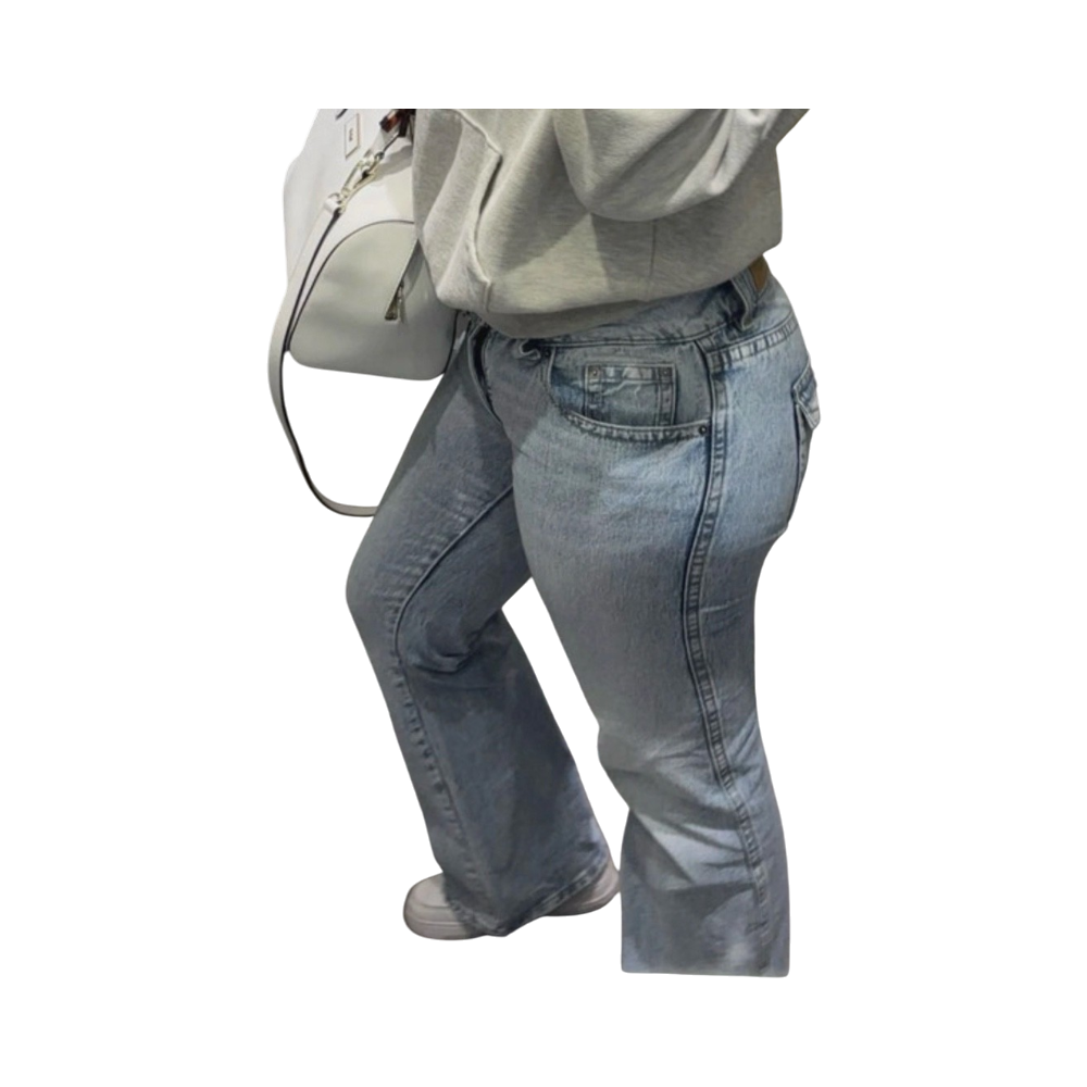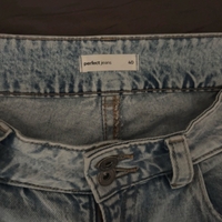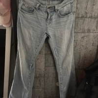 leveät lahkeiset farkut joissa on matala vyötärö. Pieniä käytön jälkiä lahkeikeissa. Farkut on noin 103 cm pitkät. Vastaa kokoa 38.