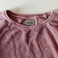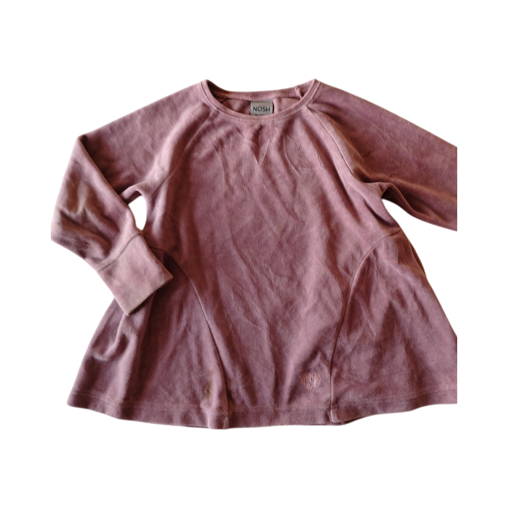 Nosh tunika/paita, velouria. 98-104 cm. Ollut yhdellä lapsella käytössä. Ei nimikoitu. Edessä yksi tahra, kaksi viimeistä lähikuvaa ovat molemmat samasta tahrasta. En ole kokeillut, lähtisikö tahranpoistoaineella pois. Normaalissa pesussa ei lähtenyt. Muutoin siistissä kunnossa.