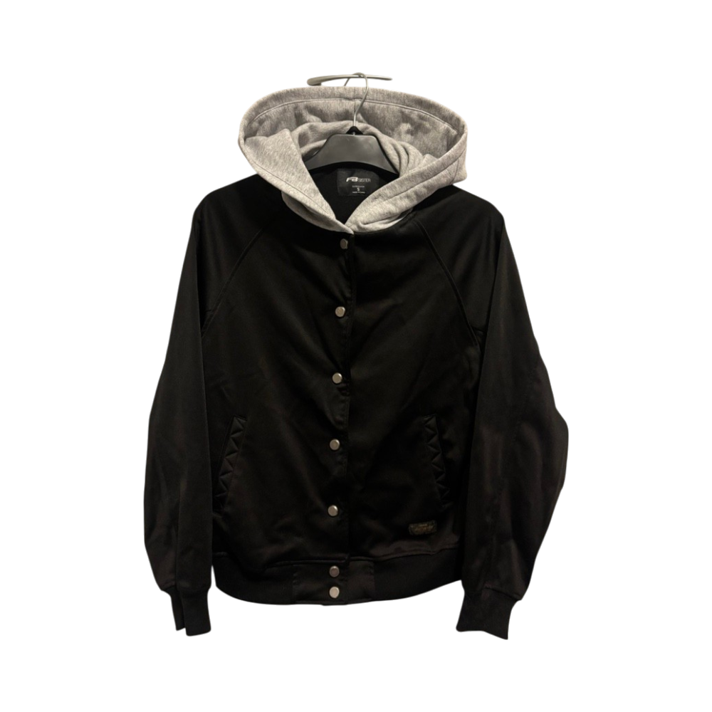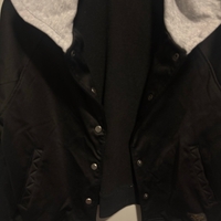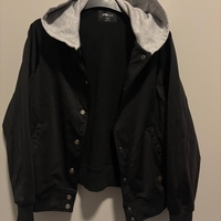 New Yorkerin musta S kokoinen bombertakki. Hyvässä kunnossa, hupullinen. Sivuilla taskut.