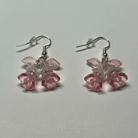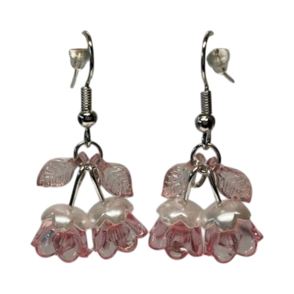 Herkät roikkuvat korvakorut pikkukukilla, vaaleanpunaiset.