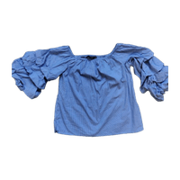 Zaran sinivalkoraidallinen röyhelöpaita koossa XS. Ostettu v. 2019 ja jäänyt käyttämättömäksi. Erinomaisessa kunnossa.