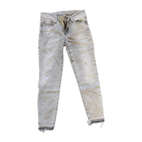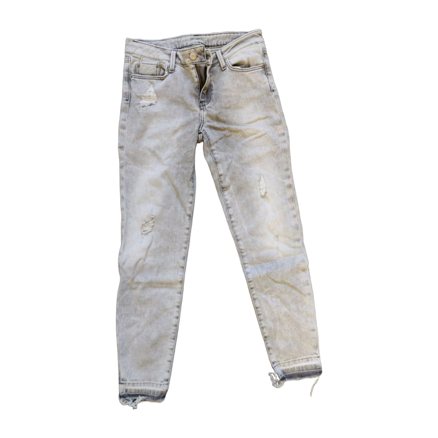 Zaran vaaleanharmaat farkut koossa EUR34. Vastaa mielestäni kokoa 25/28. Farkut ovat vähän lyhyemmät nilkasta ja kuuluu olla sellaiset. (Olen 153cm pitkä).
