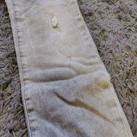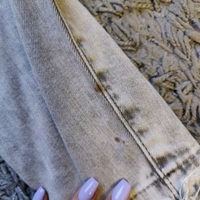 Farkuissa on ihan lahkeissa muutama tahra sekä edestä. Näkyy kuvissa yksityiskohtaisemmin.