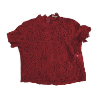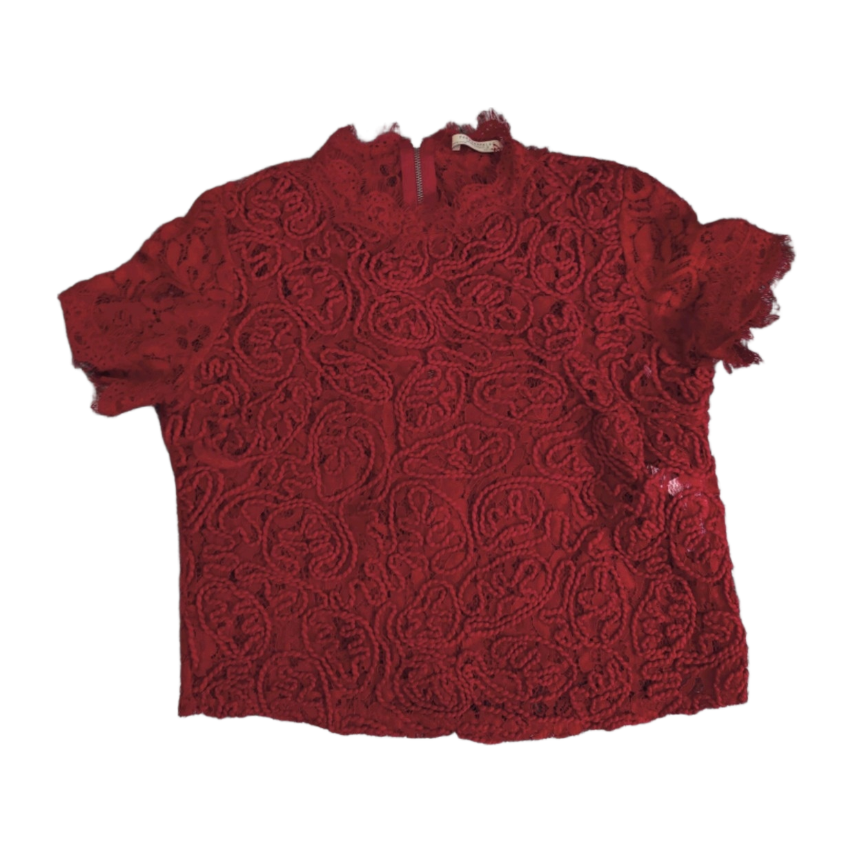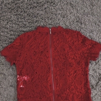 Zaran punainen pitsinen paita yksityiskohdilla koossa S. Edestä oikealla puolella pientä ratkeumaa yksityiskohdassa. Käytetty vähän.