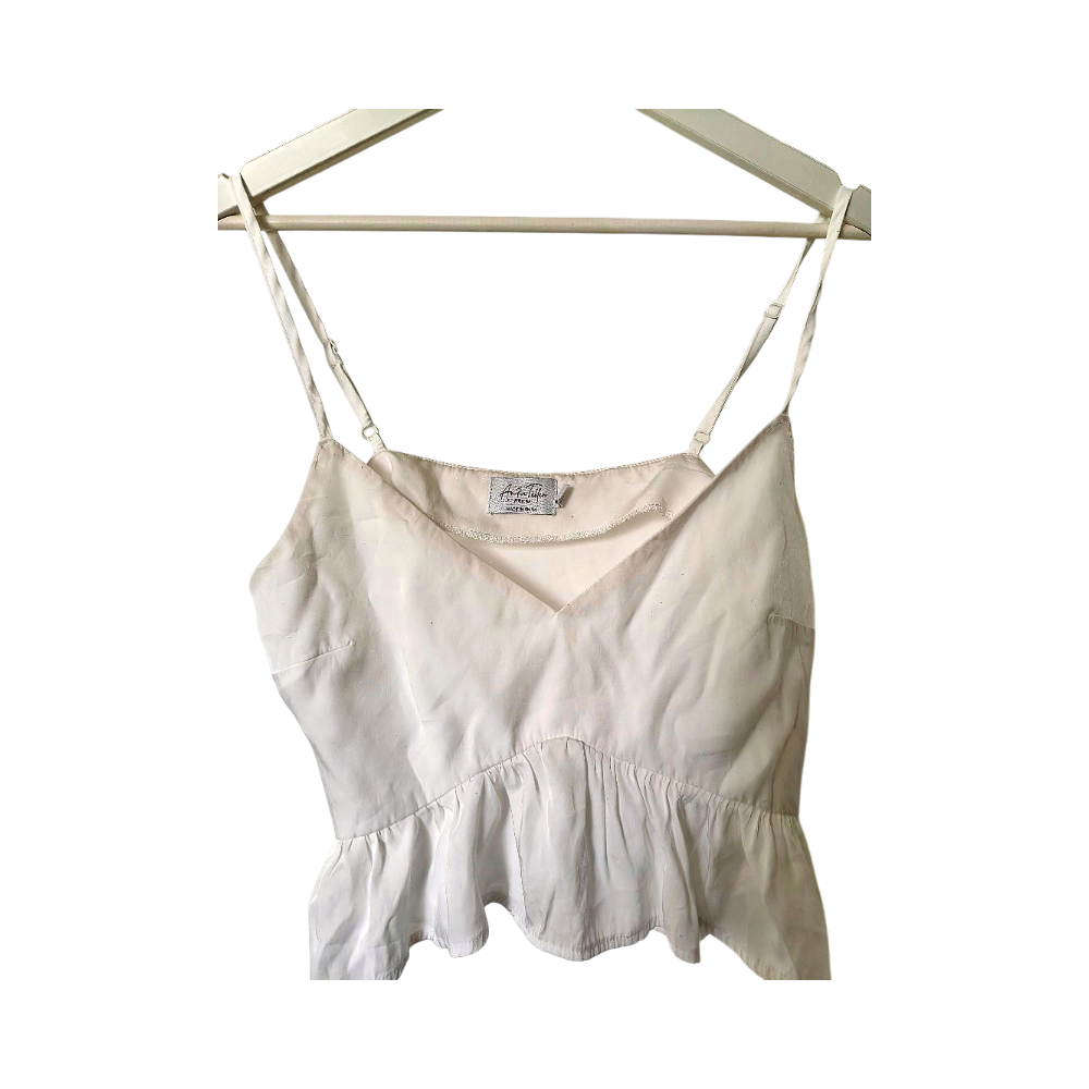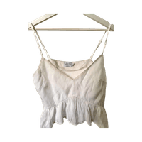 Valkoinen hihaton toppi röyhelöhelmalla, säädettävät olkaimet