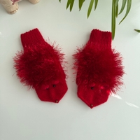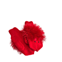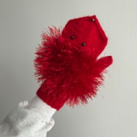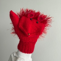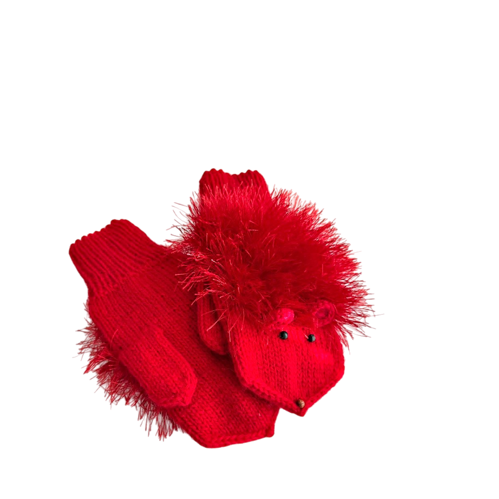 Punaiset käsintehdyt siililapaset. Kämmenosan pituus 16 cm ja koko lapanen 23 cm. Tehty villalangasta.