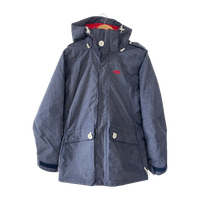 Hieman nukkaantunut hihansuista, hupun ja helman reunasta, näkyy kuvissa 3 ja 4, muuten siistissä kunnossa.