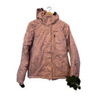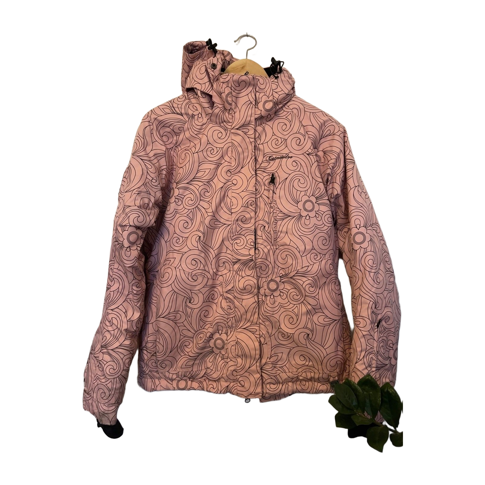 Laskettelutakki, kaikilla tarvittavilla ominaisuuksilla: lumilukko, korttitasku hihassa, povitaskut yms.