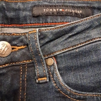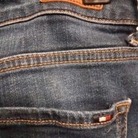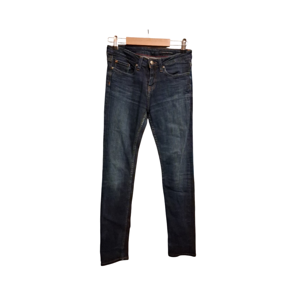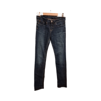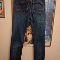 Classic mid-blue denim jeans with subtle wear and pocket logo.