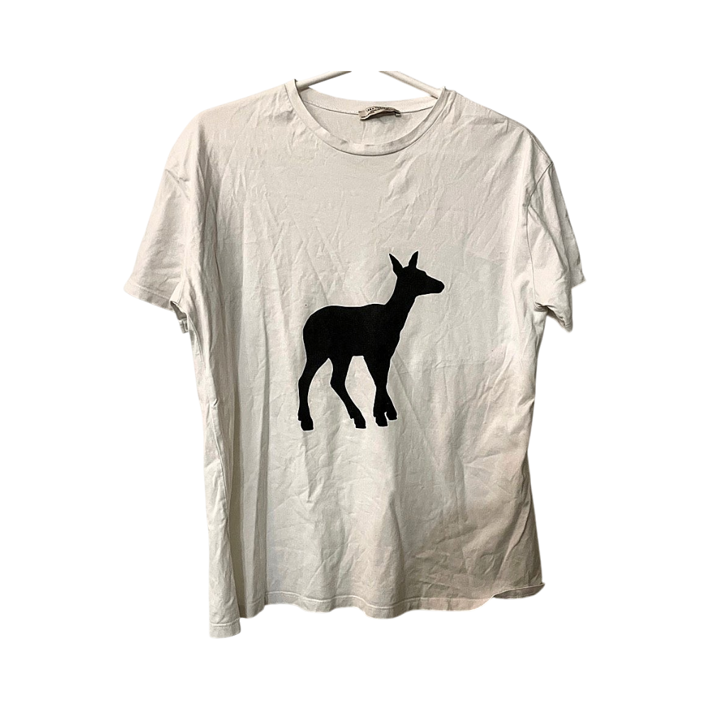 White graphic t-shirt with deer print