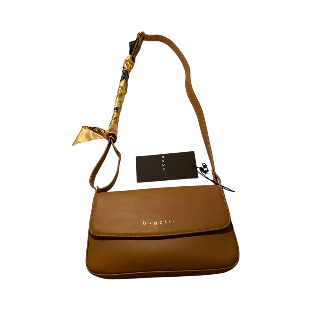 Uusi Bugatti Ponte olkalaukku, väri: konjakki. Kuvissa näkyvä silkkihuivi sisältyy kauppaan. Se on täysin uusi ja käyttämätön, mutta voin myös jättää sen pois, jos et halua sitä.